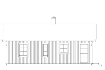 Yteffektivt fritidshus eller väl tilltagen gäststuga med två sovrum. Enplanshuset har vardagsrum/kök i öppen planlösning med ryggåstak som ger rymd, och fint ljusinsläpp genom stora fönsterpartier. Badrum med plats för tvättmaskin.