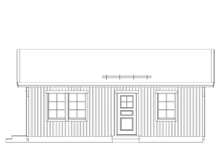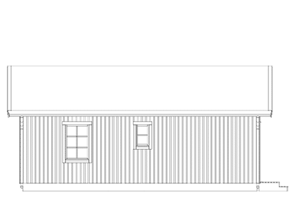 Kompakt fritidshus eller gäststuga med två sovrum och badrum. Enplanshuset har vardagsrum/kök i öppen planlösning och högt i tak med synliga hanbjälkar, och fint ljusinsläpp genom generösa fönsterpartier.