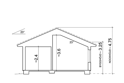 Yteffektivt fritidshus med tre sovrum. Bredden på kök/vardagsrum möjliggör en fristående köksö. Kök och vardagsrum i öppen planlösning och brutet tak som ger rymd karaktäriserar hela serien Sandhamn.