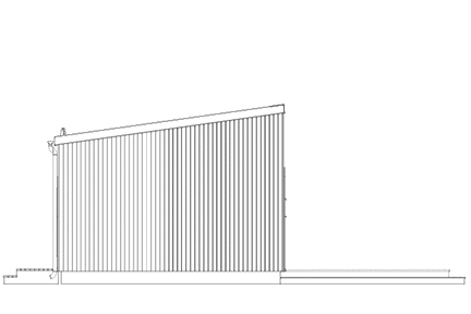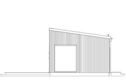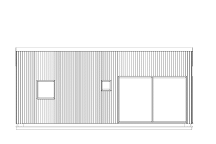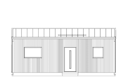 Ett stilfullt litet fritidshus eller gäststuga, med två sovrum, WC med dusch och ett mindre kök. Med 2,30 m högt fönster och skjutdörr fås ett massivt ljusinsläpp och närkontakt med utemiljön. Pulpettaket ger rymd i hela huset.