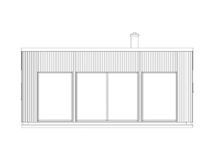 Yteffektivt litet fritidshus eller väl tilltagen gäststuga med två sovrum. Hela husserien Stil karaktäriseras av sina 2,70 m höga fönsterpartier och skjutdörrar som ger ett massivt ljusinsläpp och närkontakt med utemiljön, och pulpettaket som ger rymd i hela huset.