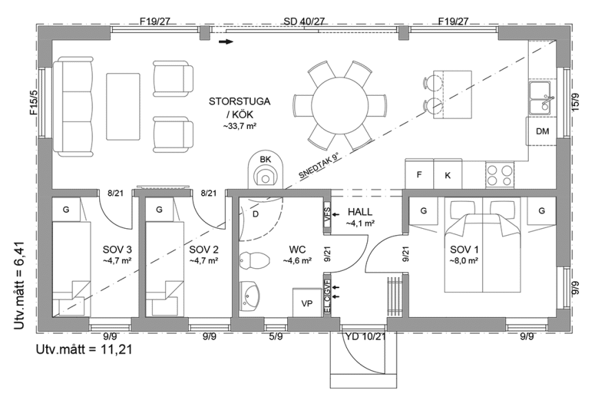 Vill ni göra ändringar i planlösningen? Vårt byggsystem är flexibelt och vi diskuterar gärna olika sorters anpassningar med er. Hör av er och berätta om hur ni vill anpassa huset!