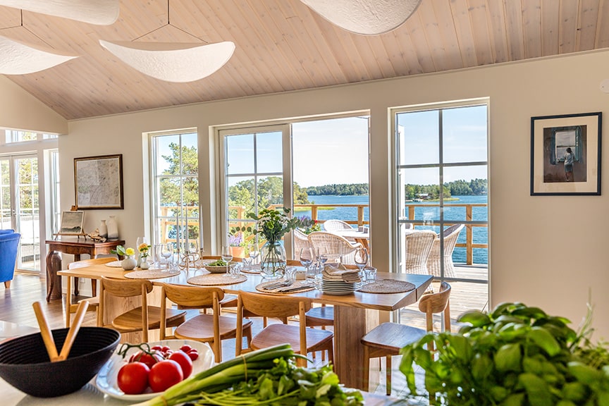 – Vi är vana vid att leverera hus i skärgårdsmiljö, och har ett stort nätverk av byggentreprenörer som kan lösa allt från första spadtag, med sjö- eller helikoptertransport ända till färdigt hus, säger Tina Fagerberg, som har varit Lotta och Justins kontaktperson på Hudikhus.